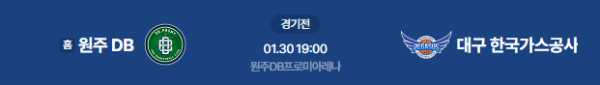 2026년 1월 30일 19:00 (KST) | KBL 원주 DB vs 대구 한국가스공사 분석