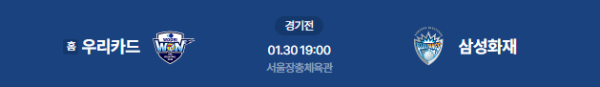 2026년 1월 30일 19:00 (KST) | V리그 우리카드 vs 삼성화재 분석