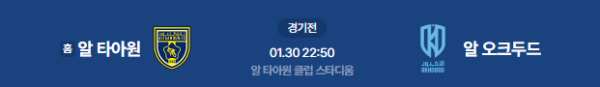 2026년 1월 30일 22:50 (KST) | 사우디 프로리그 알 타아원 vs 알 오크두드 분석