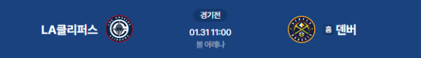 2026년 1월 31일 10:00 (KST) | NBA LA 클리퍼스 vs 덴버 너게츠 분석