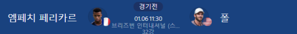 2026년 1월 6일 00:00 (KST) 예정 | ATP 브리즈번 인터내셔널 지오반니 엠페치 페리카르 vs 토미 폴 분석 리포트