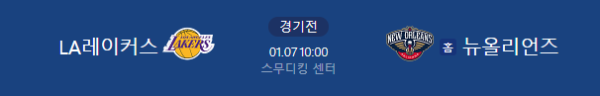 2026년 1월 7일 10:00 (KST) | 뉴올리언스 펠리컨스 vs LA 레이커스 분석 리포트
