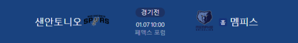 2026년 1월 7일 10:00 (KST) | 멤피스 그리즐리스 vs 샌안토니오 스퍼스 분석 리포트