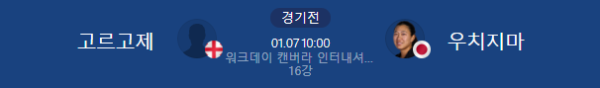 **고르고제**의 왼손잡이 서브와 변칙적인 슬라이스가 우치지마를 얼마나 흔들 수 있느냐가 관건입니다. 하지만 우치지마는 최근 상위 랭커들과의 대결을 통해 리턴 능력이 크게 향상되어 있어, 무난한 승리가 예상됩니다.