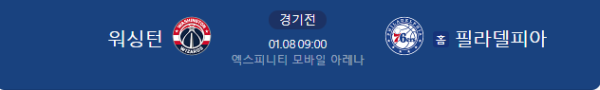 2026년 1월 8일 09:00 (KST) | NBA 정규리그 워싱턴 vs 필라델피아 분석