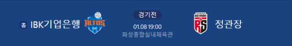 2026년 1월 8일 19:00 (KST) | V-리그 여자부 4라운드 IBK기업은행 vs 정관장 분석