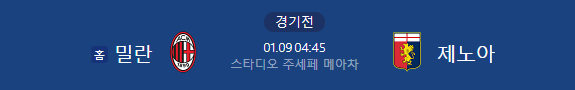 2026년 1월 9일 04:45 (KST) | 이탈리아 세리에 A 19라운드 AC 밀란 vs 제노아 분석