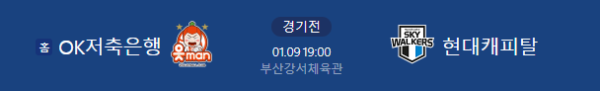 경기 장소: 부산강서실내체육관 (OK저축은행 홈)
