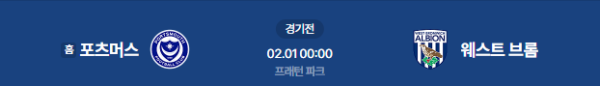 2026년 2월 1일 00:00 (KST) | 잉글랜드 챔피언십 포츠머스 vs 웨스트 브로미치 분석