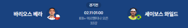 2026년 2월 11일 (수) 01:00 (KST) | ATP 250 아르헨티나 오픈 32강 마르셀로 토마스 바리오스 베라 vs 치아구 세이보스 와일드 분석