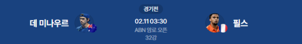2026년 2월 11일 (수) 03:00 (KST) 예정 | ATP 500 ABN AMRO 오픈 32강 알렉스 데 미나우르 vs 아르튀르 필스 분석