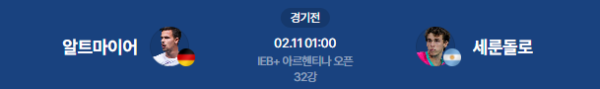 2026년 2월 11일 (수) 03:00 (KST) 예정 | ATP 250 아르헨티나 오픈 32강 다니엘 알트마이어 vs 후안 마누엘 세룬돌로 분석