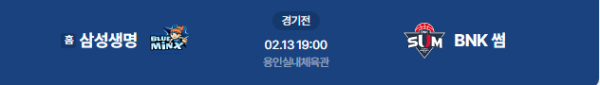 2026년 2월 13일(금) 19:00 (KST) | WKBL 정규리그 용인 삼성생명 vs 부산 BNK 썸 분석