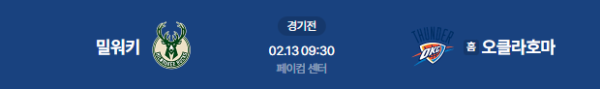 2026년 2월 13일 (금) 09:30 (KST) | NBA 정규시즌 오클라호마시티 썬더 vs 밀워키 벅스 분석