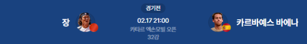 2026년 2월 17일 (화) 21:00 (KST) 예정 | ATP 250 카타르 엑손모빌 오픈 32강전 장지젠 vs 로베르토 카르바예스 바에나 분석
