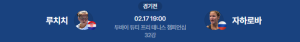 2026년 2월 17일 (화) | WTA 1000 두바이 챔피언십 32강 안토니아 루치치 vs 아나스타샤 자하로바 분석