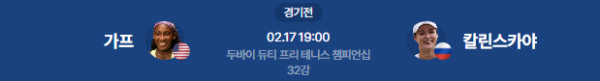 2026년 2월 17일 (화) | WTA 1000 두바이 듀티 프리 챔피언십 32강전 코코 가프 vs 안나 칼린스카야 분석