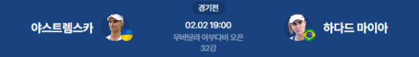 2026년 2월 2일 (월) | WTA 500 무바달라 아부다비 오픈 32강 분석