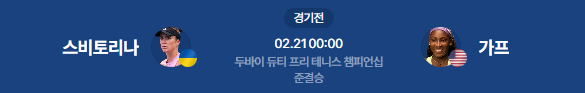 2026년 2월 20일(금) 23:00(KST) 이후 예정 | WTA 1000 두바이 듀티 프리 테니스 챔피언십 준결승 엘리나 스비토리나 vs 코코 가프 분석