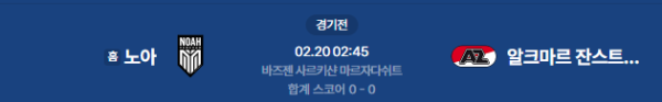 2026년 2월 20일 (금) 02:45 (KST) 예정 | UEFA 유로파 컨퍼런스리그(UECL) 16강 플레이오프 1차전 FC 노아 vs AZ 알크마르 분석