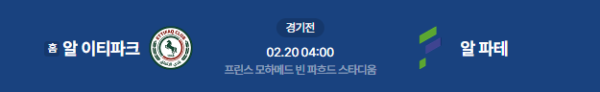 2026년 2월 20일 (금) 04:00 (KST) 예정 | 사우디 프로페셔널리그 23라운드 알 이티파크 vs 알 파테 분석