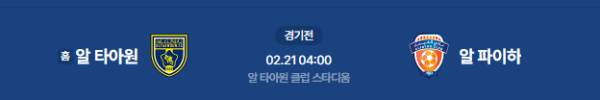 2026년 2월 21일 (토) 01:00 (KST) 예정 | 사우디 프로페셔널리그 23라운드 알 타아원 vs 알 파이하 분석