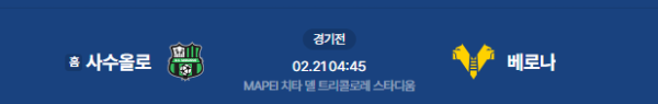 2026년 2월 21일 (토) 04:45 (KST) 예정 | 이탈리아 세리에 A 26라운드 사수올로 vs 헬라스 베로나 분석