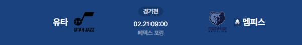 2026년 2월 21일 (토) 09:00 (KST) 예정 | NBA 정규리그 유타 재즈 vs 멤피스 그리즐리스 분석