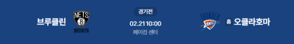 2026년 2월 21일 (토) 10:00 (KST) 예정 | NBA 정규리그 브루클린 네츠 vs 오클라호마시티 썬더 분석