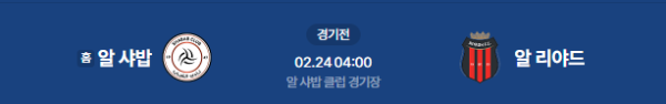 2026년 2월 24일 (화) 04:00 (KST) 예정 | 사우디 프로페셔널리그 10라운드(순연) 알 샤밥 vs 알 리야드 분석