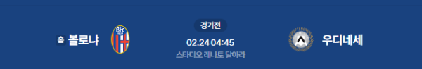 2026년 2월 24일 (화) 04:45 (KST) 예정 | 이탈리아 세리에 A 26라운드 볼로냐 vs 우디네세 분석