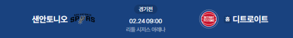 2026년 2월 24일 (화) 09:00 (KST) 예정 | NBA 정규리그 샌안토니오 스퍼스 vs 디트로이트 피스톤스 분석