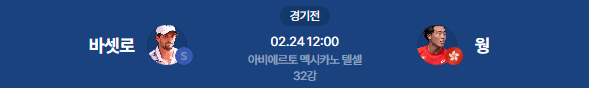 2026년 2월 24일 (화) 10:10 (KST) 예정 | ATP 500 아카풀코 32강 발렌틴 바세로 vs 콜먼 웡 분석