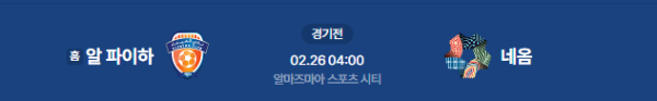 2026년 2월 26일 (목) 04:00 (KST) 예정 | 사우디 프로페셔널리그 10라운드 알 파이하 vs 네옴 SC 분석
