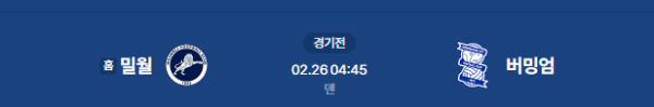 2026년 2월 26일 (목) 04:45 (KST) 예정 | 잉글랜드 챔피언십 34라운드 밀월 vs 버밍엄 시티 분석
