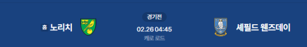 2026년 2월 26일 (목) 04:45 (KST) 예정 | 잉글랜드 챔피언십 34라운드 노리치 시티 vs 셰필드 웬즈데이 분석