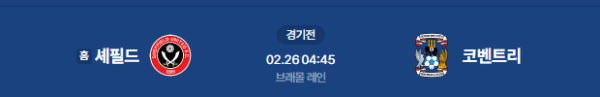 2026년 2월 26일 (목) 04:45 (KST) 예정 | 잉글랜드 챔피언십 34라운드 셰필드 유나이티드 vs 코벤트리 시티 분석
