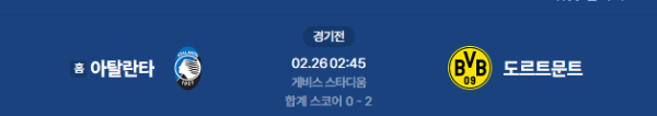 2026년 2월 26일 (목) 04:45 (KST) 예정 | UEFA 챔피언스리그 16강 진출 결정전 아탈란타 vs 도르트문트 분석