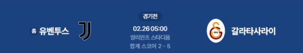 2026년 2월 26일 (목) 05:00 (KST) 예정 | UEFA 챔피언스리그 16강 진출 결정전 2차전 유벤투스 vs 갈라타사라이 분석