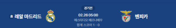 2026년 2월 26일 (목) 05:00 (KST) 예정 | UEFA 챔피언스리그 16강 진출 결정전 2차전 레알 마드리드 vs 벤피카 분석
