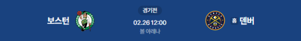 2026년 2월 26일 (목) 09:00 (KST) 예정 | NBA 정규리그 덴버 너게츠 vs 보스턴 셀틱스 분석