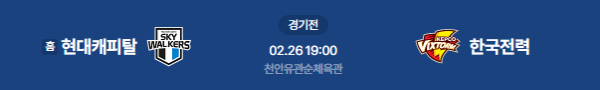 2026년 2월 26일 (목) 19:00 (KST) 예정 | V-리그 남자부 6라운드 현대캐피탈 vs 한국전력 분석