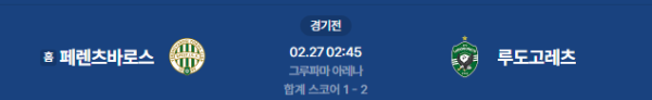 2026년 2월 27일 (금) 02:45 (KST) 예정 | UEFA 유로파리그 16강 플레이오프 2차전 페렌츠바로스 vs 루도고레츠 분석