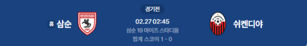 2026년 2월 27일 (금) 02:45 (KST) 예정 | UEFA 컨퍼런스리그 16강 플레이오프 2차전 삼순스포르 vs KF 쉬켄디야 분석