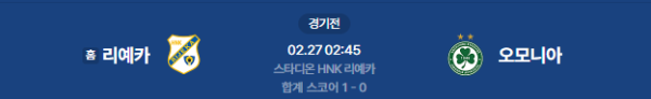 2026년 2월 27일 (금) 02:45 (KST) 예정 | UEFA 컨퍼런스리그 16강 플레이오프 2차전 리예카 vs 오모니아 분석