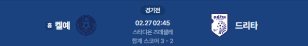 2026년 2월 27일 (금) 02:45 (KST) 예정 | UEFA 컨퍼런스리그 16강 플레이오프 2차전 켈예 vs 드리타 분석