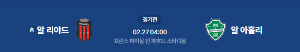 2026년 2월 27일 (금) 04:00 (KST) 예정 | 사우디 프로페셔널리그 24라운드 알 리야드 vs 알 아흘리 분석