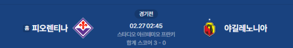 2026년 2월 27일 (금) 04:45 (KST) 예정 | UEFA 컨퍼런스리그 16강 플레이오프 2차전 피오렌티나 vs 야길레노니아 분석