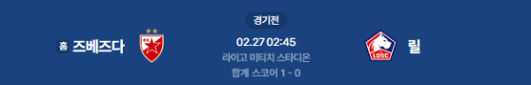 2026년 2월 27일 (금) 04:45 (KST) 예정 | UEFA 유로파리그 16강 플레이오프 2차전 즈베즈다 vs 릴 분석