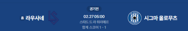 2026년 2월 27일 (금) 05:00 (KST) 예정 | UEFA 컨퍼런스리그 16강 플레이오프 2차전 라우사네 vs 시그마 올로무츠 분석